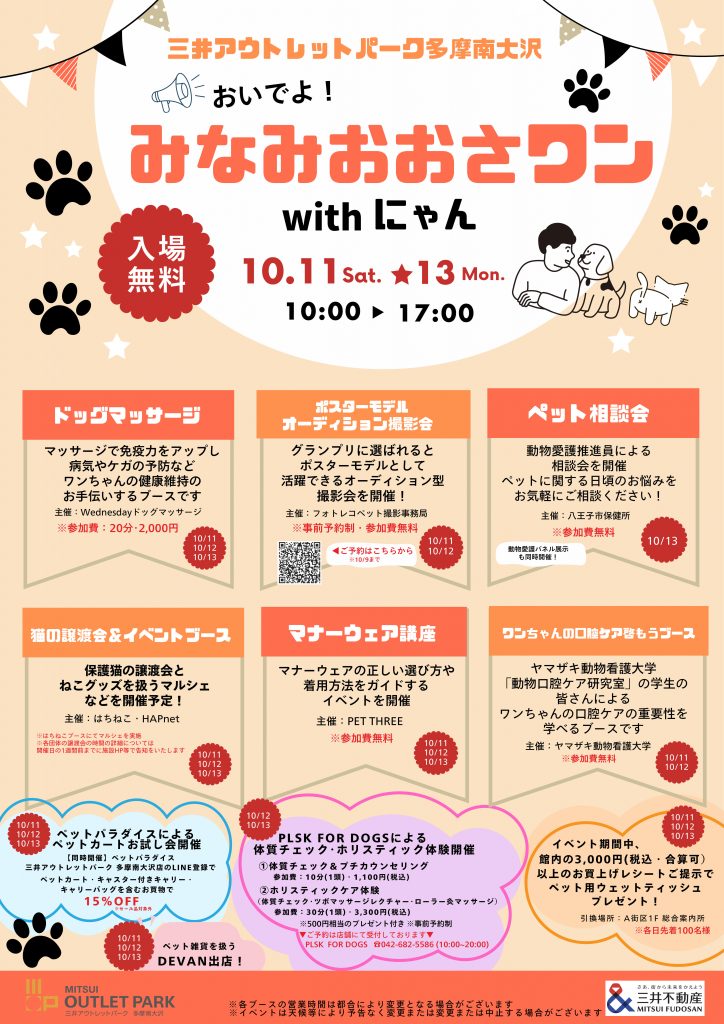 10/11~13 三井アウトレット多摩南大沢「みなみおおさワンwithにゃん」出展のご案内